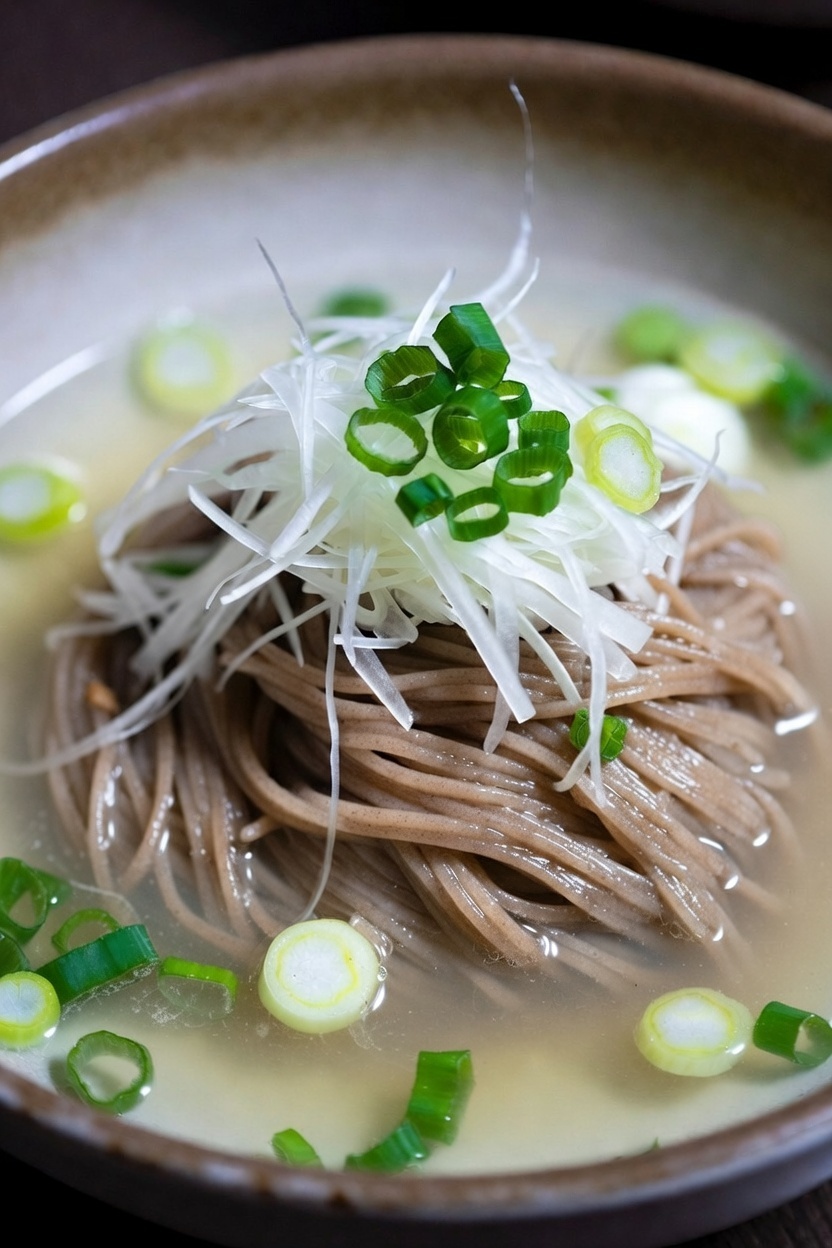 In Korea, the broth that pairs best with buckwheat noodles is known as dongchimi (a type of watery radish kimchi).