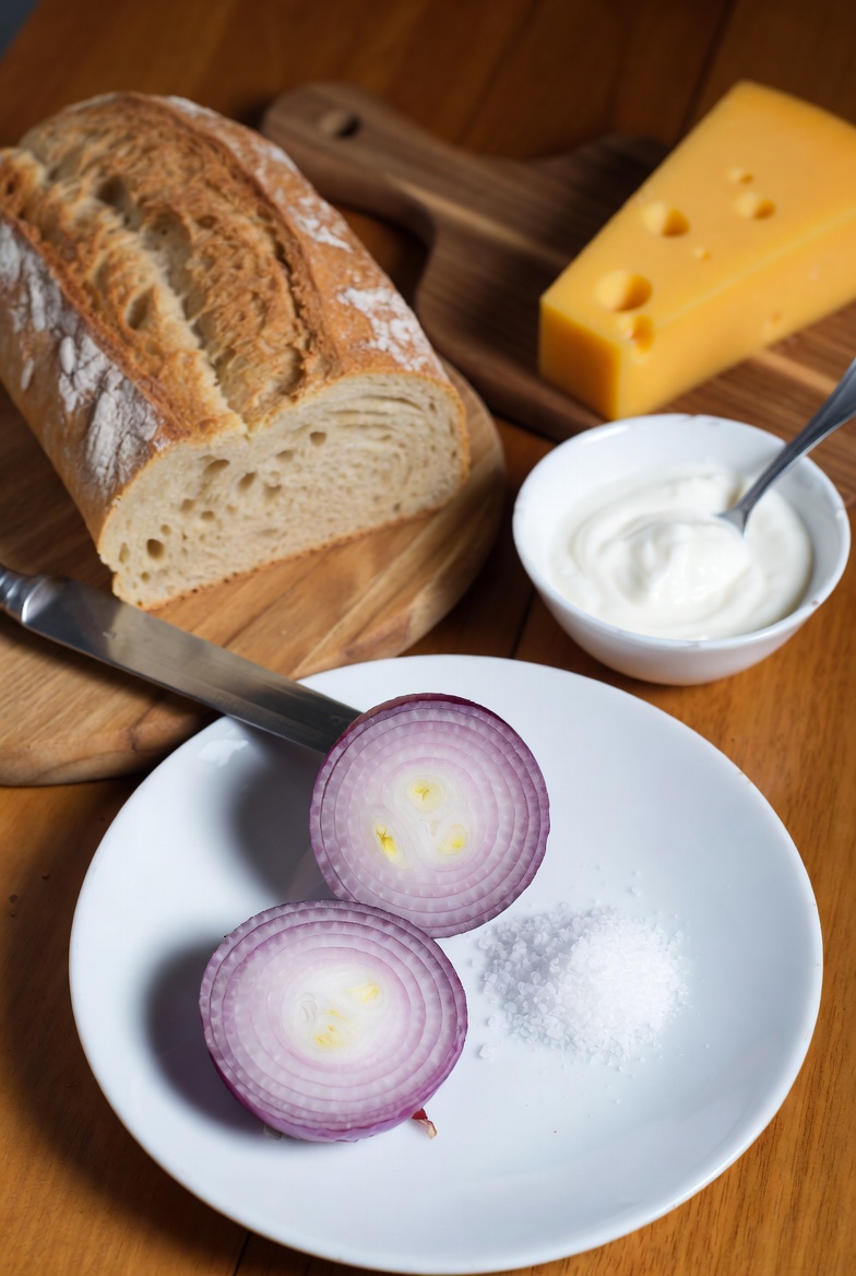 Yogurt, Cheese, Bread, Onion, Salt